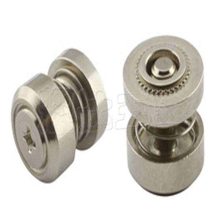 这种紧固件是一组,看上去像手动拧紧的螺钉,但其实是一个组合的组件,带有一个手动拧紧手柄和一个压铆套,以及*后面的螺钉,不同组合后会有所不同系留螺丝面板紧固件。原理类似于压力铆接原理,可以随心所欲匹配各种形状以形成所需的外观。
