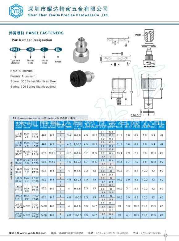 产品详情:浮动弹簧螺丝面板紧固件可以补偿配合孔的安装误差。螺纹大小#4到1/4英寸,M3到M6