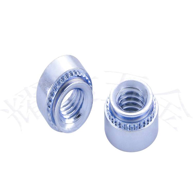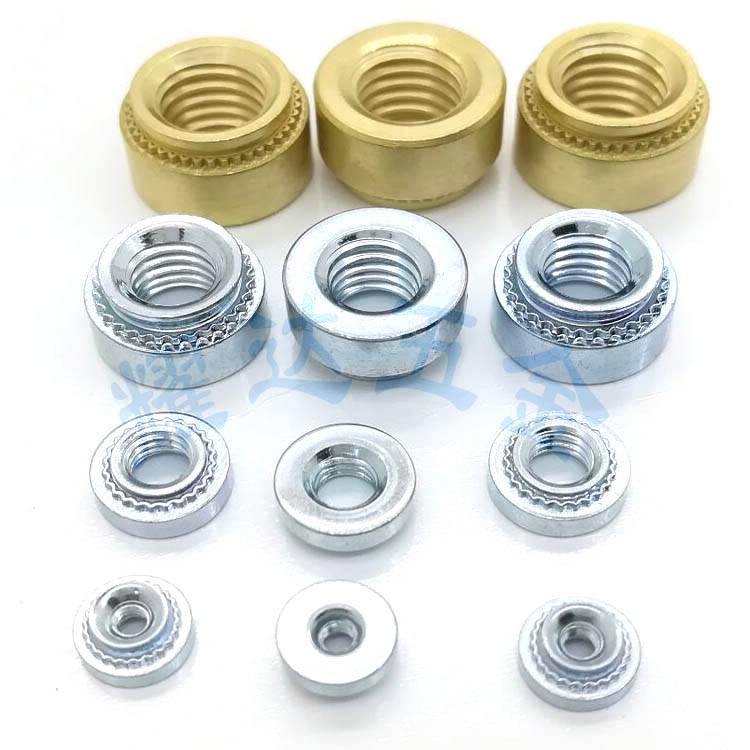 花齿被压入钣金的预设孔中。通常,预置孔的直径略小于压铆螺母的压花齿的外径。压铆螺母的花朵是由压力制成的。